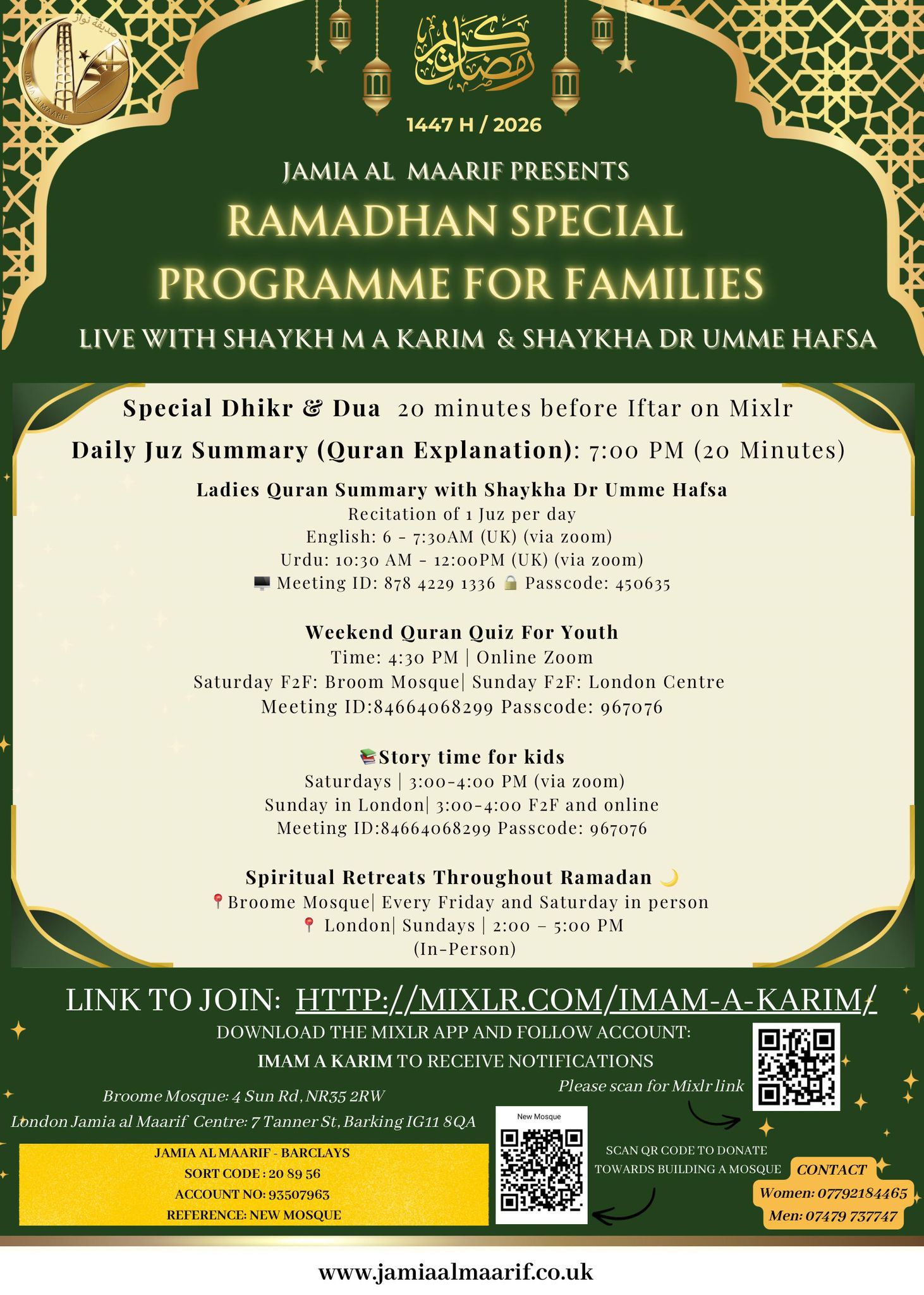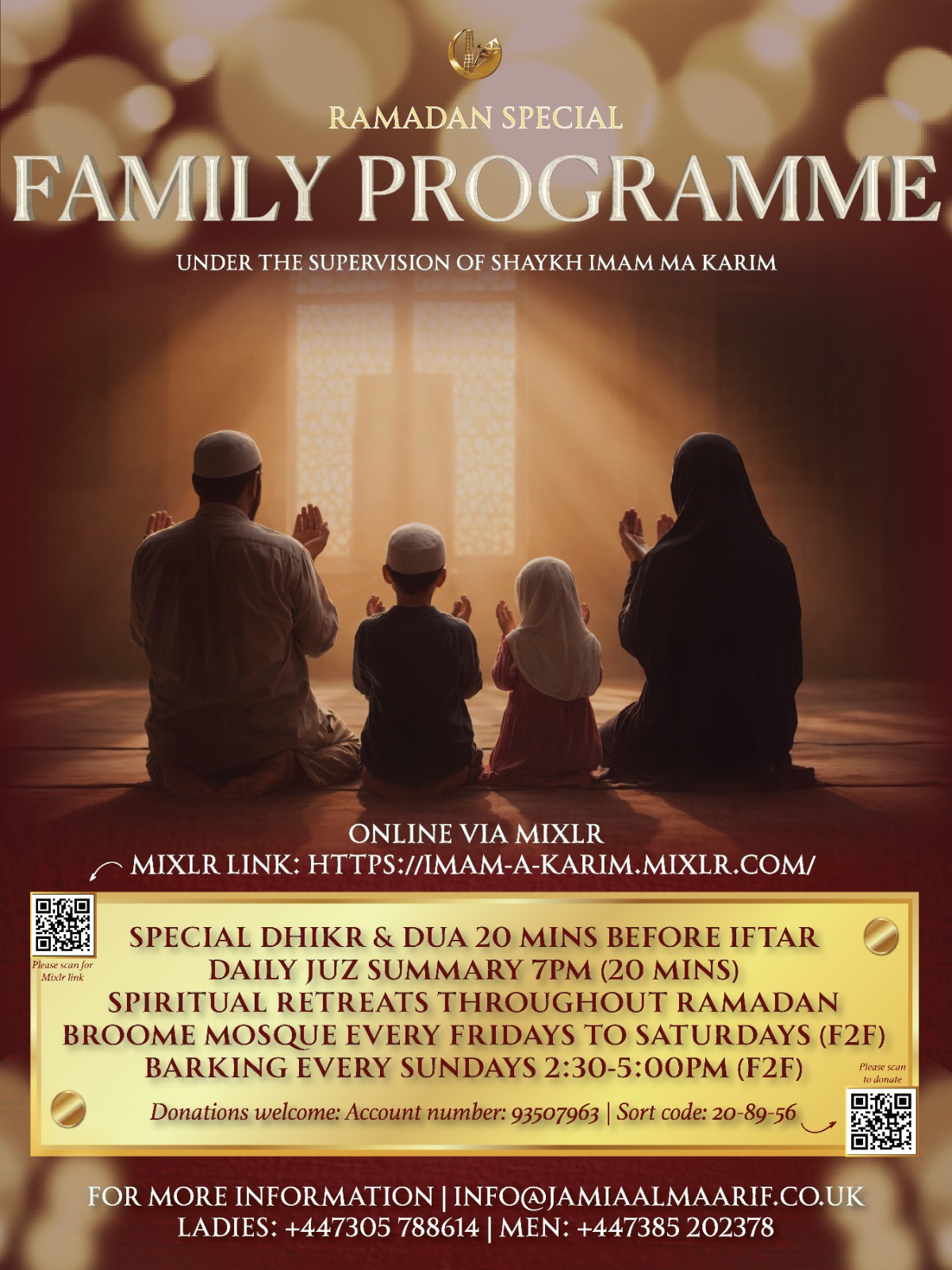 Join us this Ramadan for a spiritually uplifting family programme designed to bring our community together. The programme will include Qur’an explanation sessions, Taraweeh prayers,...