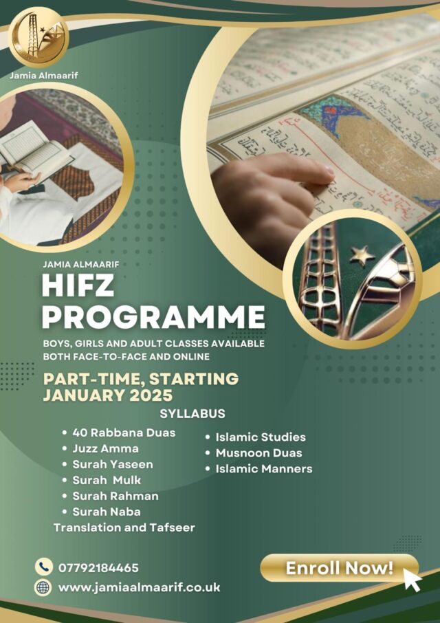 Our Part-Time Hifz Programme is designed to make the memorisation of the Qur’an accessible for learners of all ages and backgrounds—boys, girls, and adults—regardless of their daily commitments. Whether you’re a student, a working professional, or a parent, this flexible programme supports your journey of Hifz at a comfortable pace.
